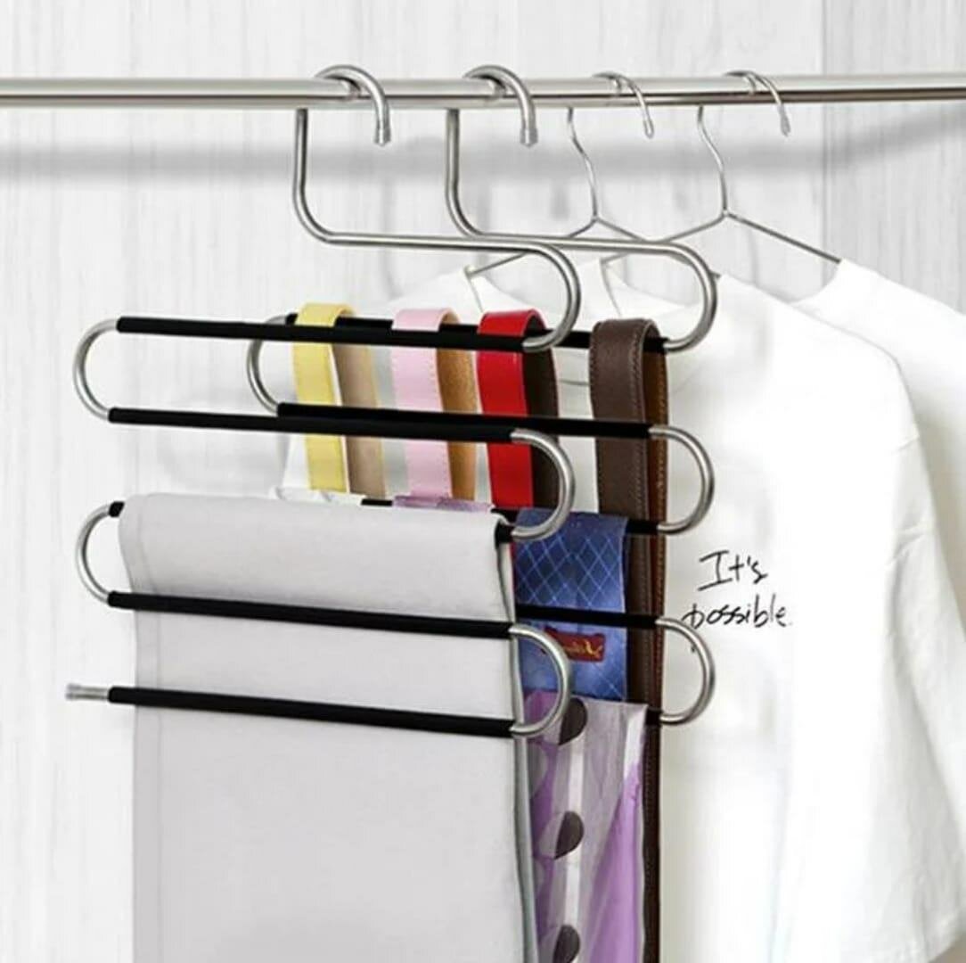 Optimisez votre espace avec ce cintre multifonctionnel 5 en 1. Idéal pour organiser pantalons, cravates, écharpes et plus encore. Conception robuste en acier inoxydable. Parfait pour les petits espaces ! Vous achetez et recevez 5 pièces