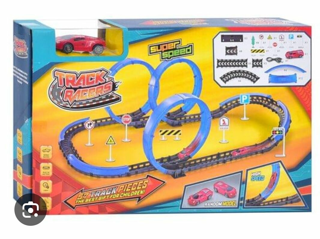 Découvrez le circuit de course ultime avec des boucles, des virages serrés et une voiture rapide. Parfait pour les enfants, ce jouet stimule l'imagination et offre des heures d'amusement. Fabriqué en matériaux sûrs et colorés, il est un cadeau idéal pour les petits amateurs de vitesse. A partir de 3 ans.