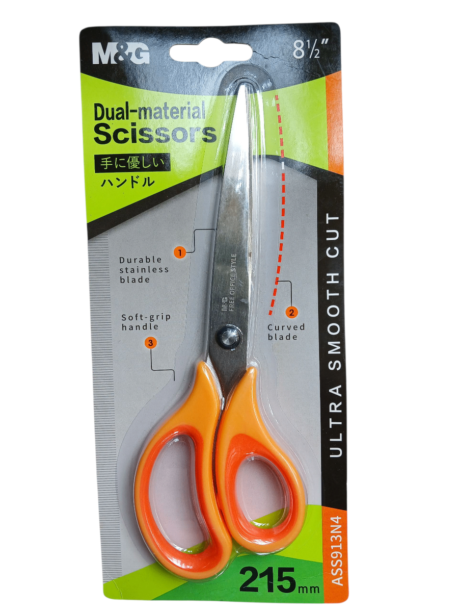 Profitez d'une coupe ultra fluide avec ces ciseaux M&G à lame en acier inoxydable durable et poignée douce. Idéals pour vos besoins quotidiens de découpe, leur design ergonomique assure un confort optimal. Parfaits pour la maison ou le bureau.