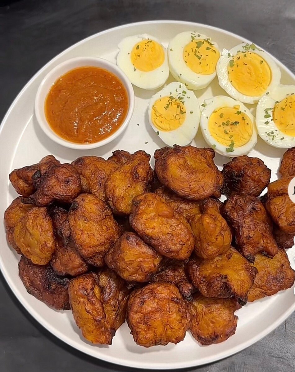 Découvrez nos beignets de claclo croustillants, accompagnés d'œufs durs et d'une sauce piquante. Idéal pour un apéritif ou un repas léger, ce plateau est parfait pour partager. Savourez le mélange de textures croquantes et tendres, relevées par des épices savoureuses. Un délice à chaque bouchée !