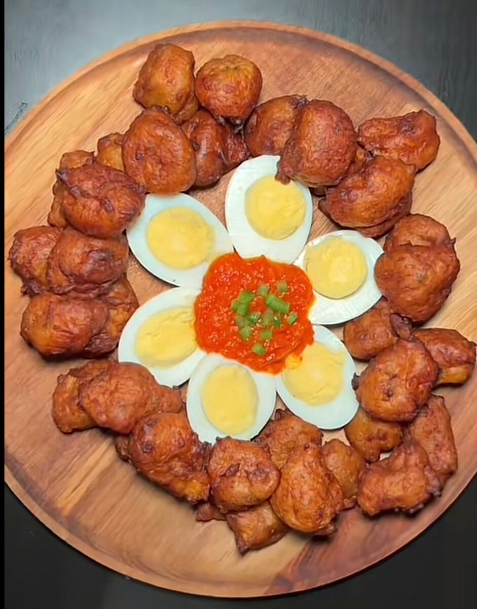 Découvrez notre assiette appétissante d'Accra de Morue, accompagnée d'œufs durs et d'une sauce piquante. Un délice exotique parfait pour vos repas de fête ou apéritifs. Fait avec des ingrédients frais, pour une saveur irrésistible.