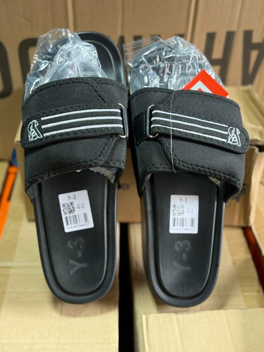 Claquettes Y-3 : style décontracté et confort optimal. Semelle antidérapante et ajustement parfait avec scratch réglable. Idéales pour la plage ou la détente à la maison.