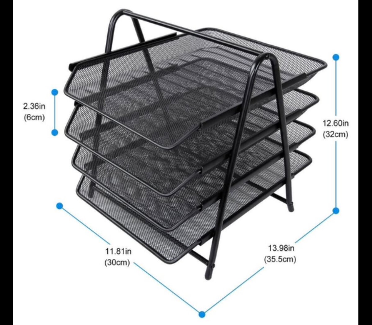 Organisez votre espace de travail avec ce classement de bureau à 4 niveaux. Fabriqué en métal noir durable, il offre une solution élégante et pratique pour trier courriers, documents et fichiers. Parfait pour la maison ou le bureau!