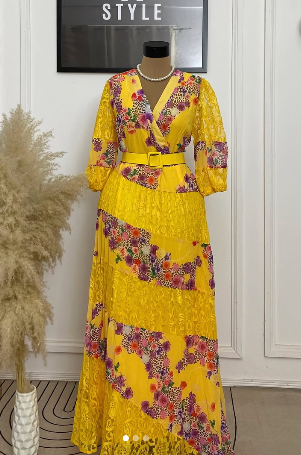 ELEGANT BELTED FLORAL MAXI DRESS