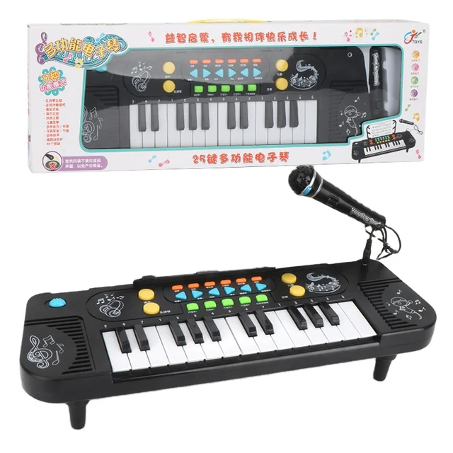 Ce clavier électronique pour enfant est équipé de 24 touches, de sons variés et d'un micro, parfait pour stimuler la créativité musicale des petits. Idéal pour les débutants, il offre une introduction amusante à la musique. Un excellent choix pour des heures de jeu éducatif.