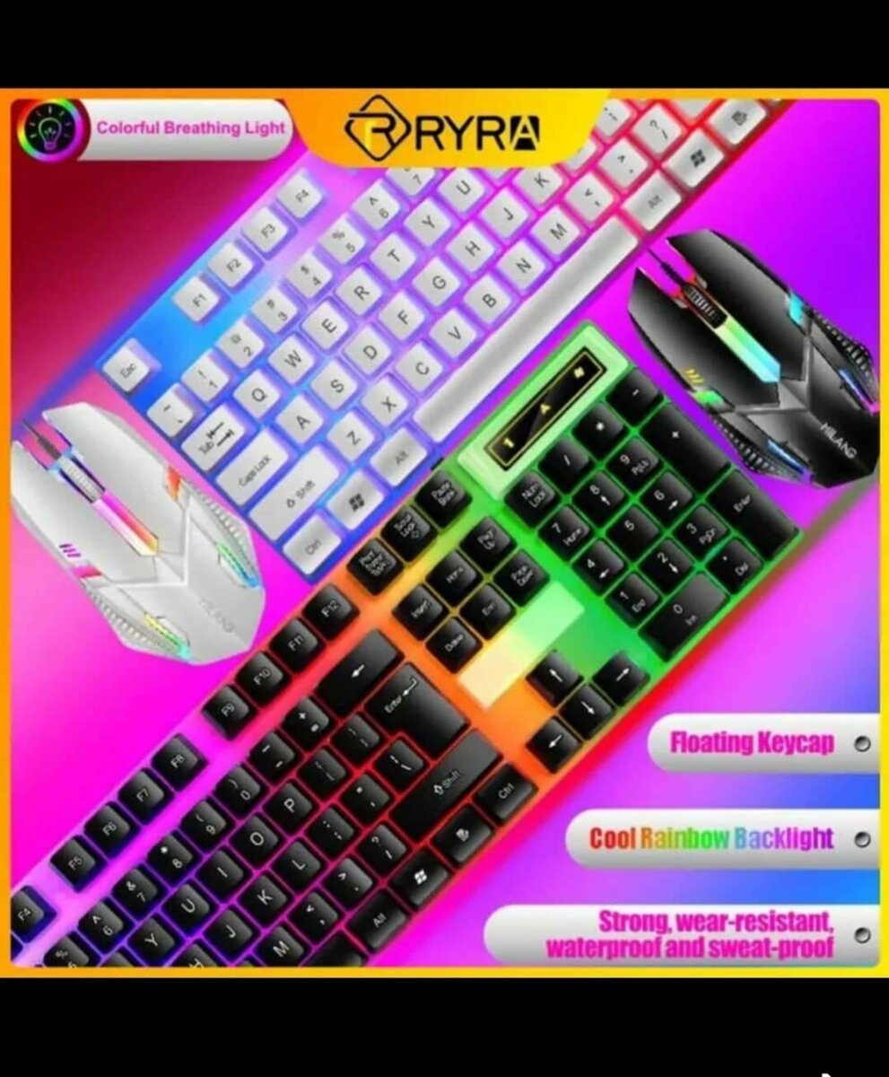 Ensemble clavier et souris RYRA avec rétroéclairage arc-en-ciel. Résistant, étanche et anti-sueur. Idéal pour gamers.