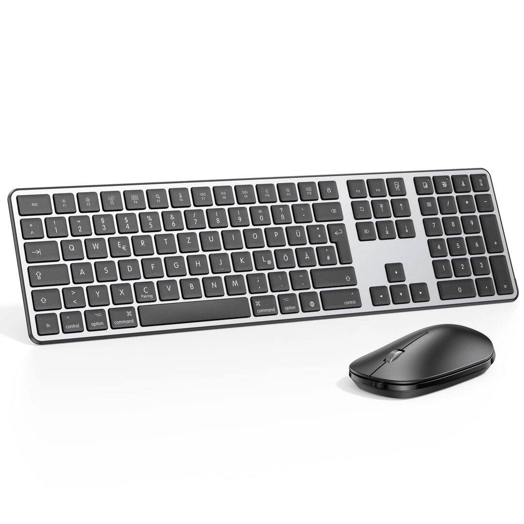 Clavier et souris Bluetooth pour Mac, clavier et souris sans fil OMOTON pour Apple MacBook Pro/Air, iMac, iMac Pro, Mac Mini/Pro, alimenté par piles AAA, taille standard, plusieurs appareils, AZERTY, gris sidéral