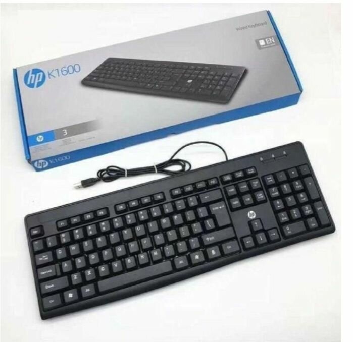 Clavier filaire HP K1600 avec connexion USB pour une saisie fluide et efficace. Parfait pour le bureau ou la maison.