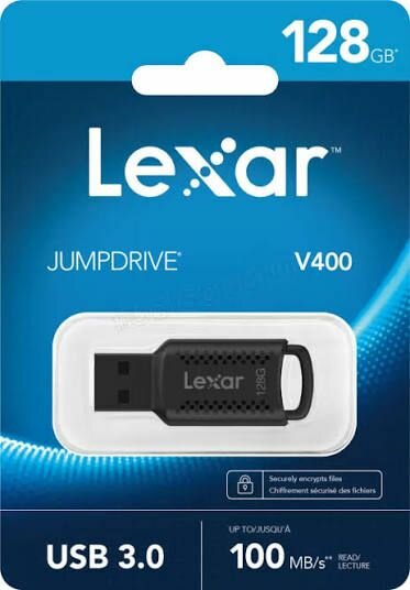 La clé USB Lexar V400, avec ses 128 Go, offre un stockage rapide et sécurisé grâce à son interface USB 3.0. Idéale pour le transfert rapide de fichiers avec une vitesse de lecture allant jusqu'à 100 Mo/s. Parfaite pour tous vos besoins numériques.