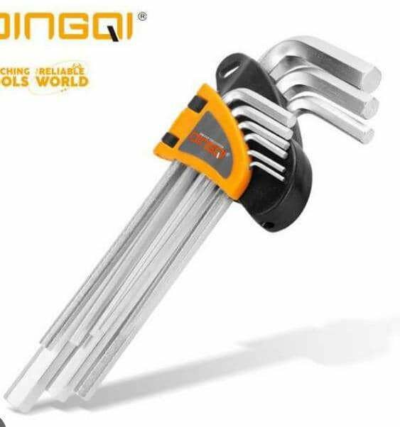 Découvrez les clés Allen DINGQI, un ensemble de 9 clés hexagonales robustes, parfait pour les réparations à la maison ou pour les bricoleurs passionnés. Fabriqué en acier durable pour une longue durée de vie. Idéal pour visser et dévisser efficacement.