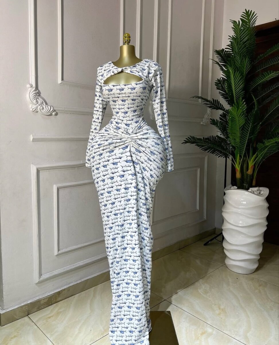 Robe longue blanche et bleue