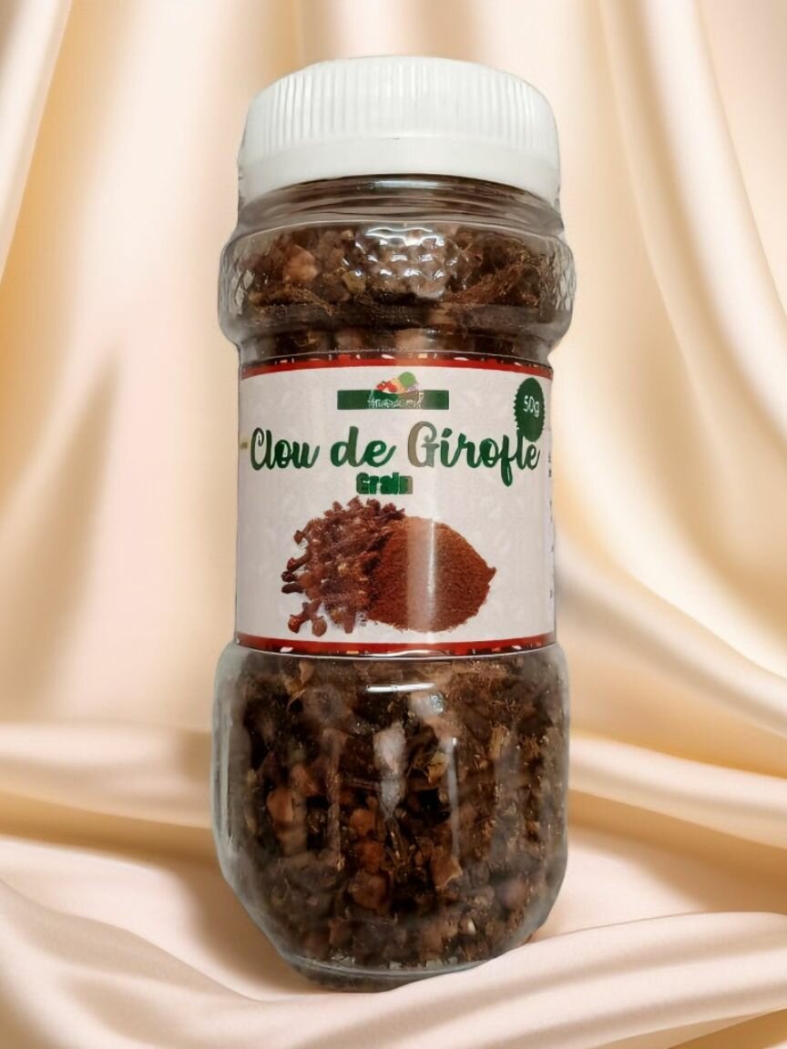 Clou de girofle : Épice au goût fort et légèrement sucré, souvent utilisée dans les plats mijotés, pâtisseries et boissons chaudes.