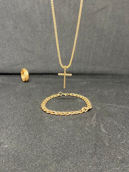 Un ensemble raffiné de bijoux dorés avec montre. Parfait pour rehausser toute tenue élégante. Inclut bagues, bracelet, boucle d'oreille et collier. Idéal pour offrir ou se faire plaisir.
