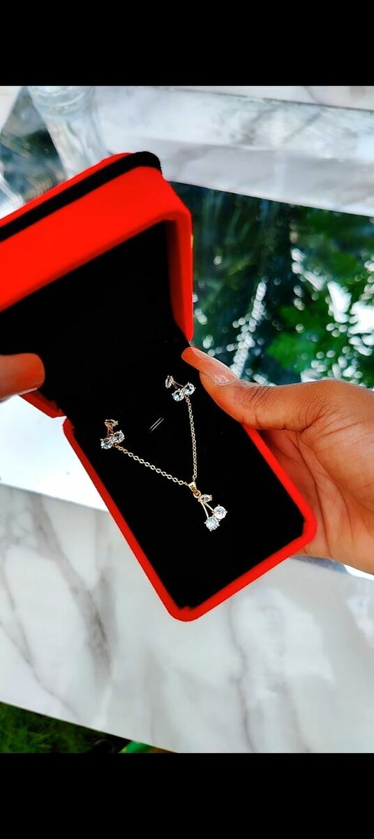 Ce magnifique coffret bijou comprend un pendentif et des boucles d'oreilles assorties, idéal pour les occasions spéciales. Avec son design élégant et ses détails étincelants, il apporte une touche de sophistication à chaque tenue. Parfait comme cadeau pour quelqu'un de spécial ou pour se faire plaisir. Réalisé avec soin pour un look intemporel.