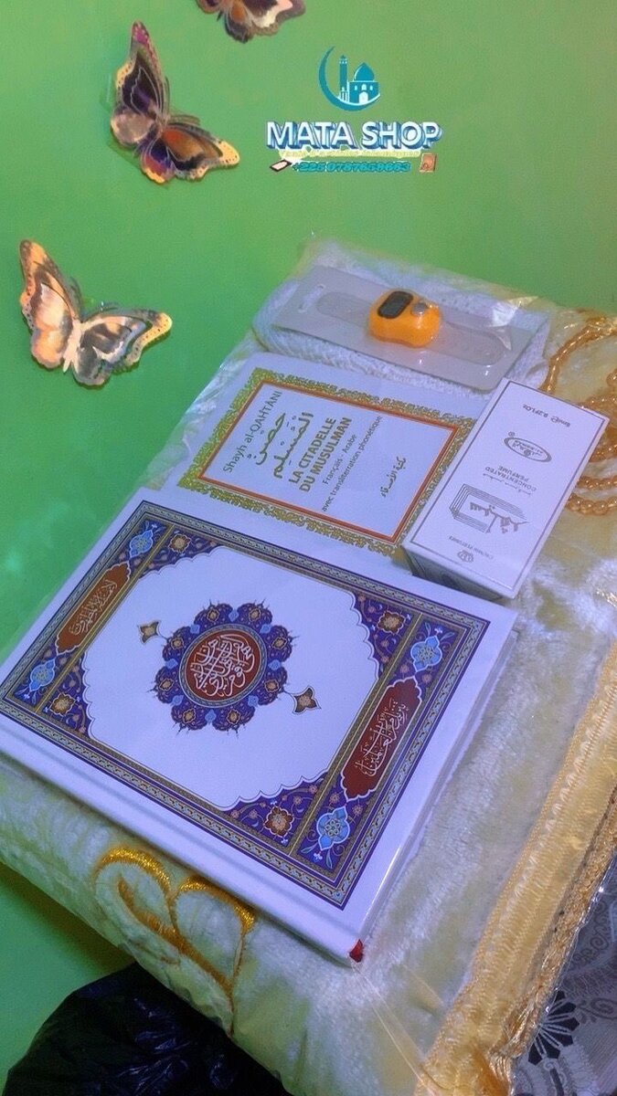 Ce coffret cadeau islamique est idéal pour ceux qui souhaitent renforcer leur spiritualité. Complet avec un exemplaire du Saint Coran, un tient registre de prières et des accessoires de prière, il offre tout ce dont vous avez besoin pour enrichir vos pratiques spirituelles. Parfait pour offrir lors d'occasions spéciales ou comme geste de partage et de bienveillance. Un choix élégant et significatif pour vous ou vos proches.