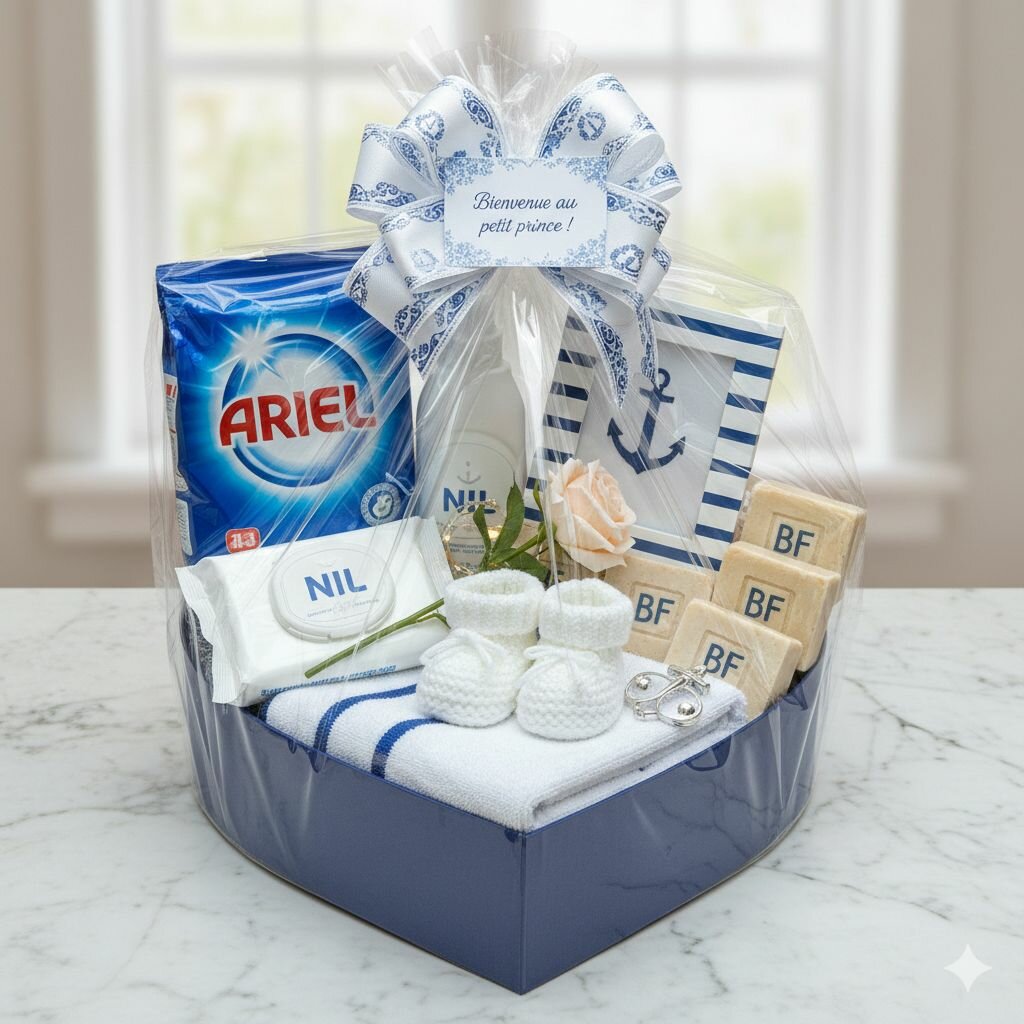 Offrez un coffret cadeau naissance au thème marin, parfait pour accueillir un nouveau-né. Avec des produits pour le bain, des chaussons et des accessoires, ce coffret est un choix idéal pour célébrer l'arrivée d'un petit prince. Élégance et utilité combinées pour les jeunes parents.