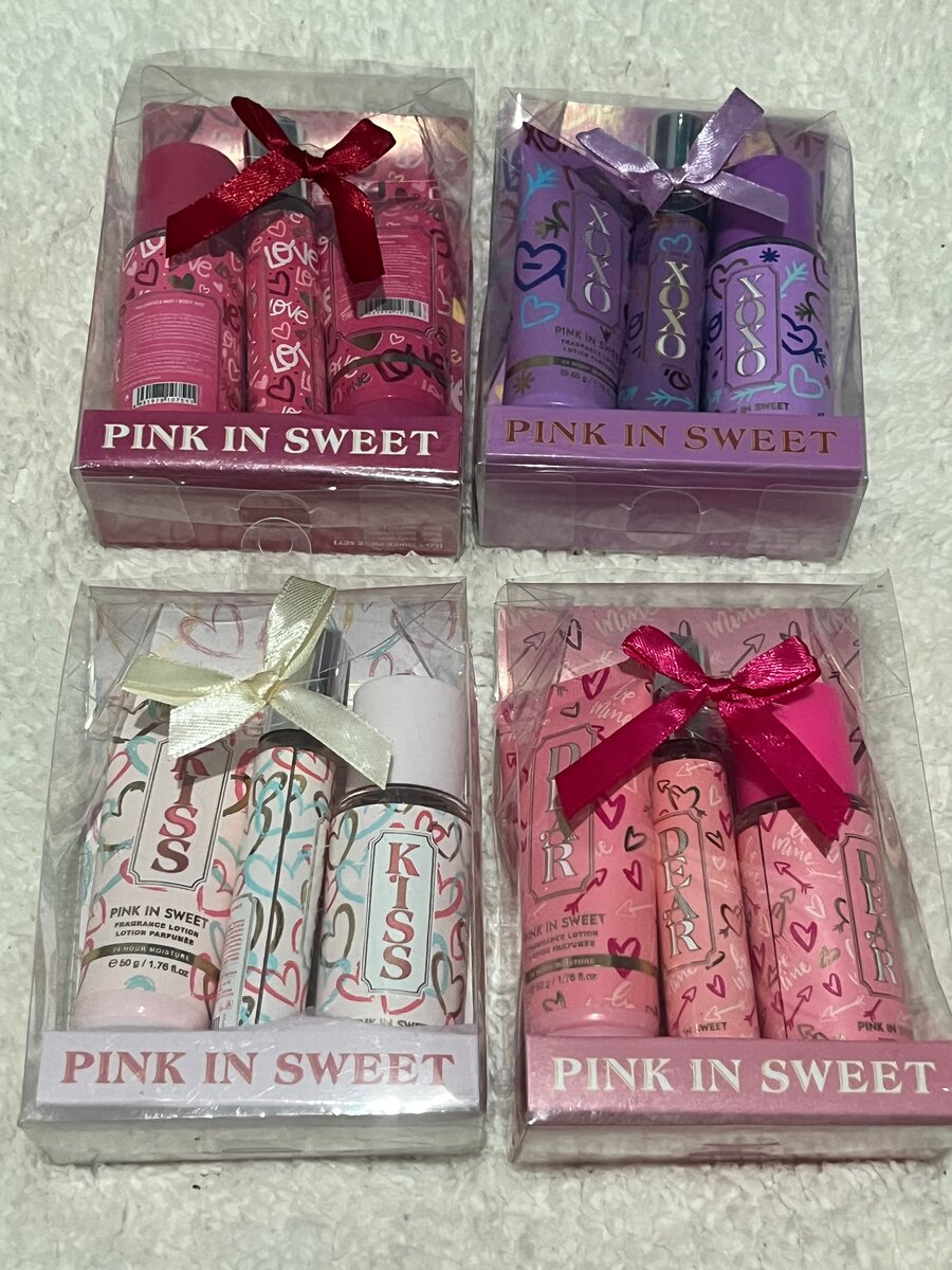 Découvrez le coffret cadeau parfumé "Pink in Sweet", une sélection de lotions et sprays pour une routine beauté délicatement parfumée. Idéal pour offrir à vos proches ou pour vous faire plaisir, ce coffret ajoute une touche de douceur à votre quotidien. Parfait pour toutes occasions, il contient tout le nécessaire pour une peau hydratée et subtilement parfumée.