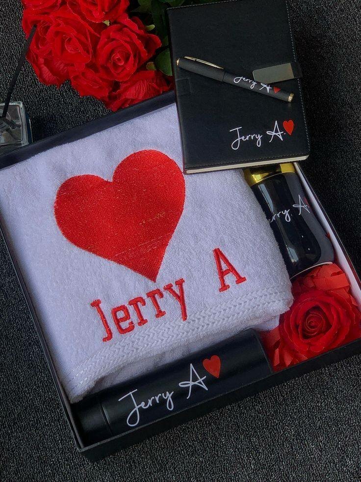 Surprenez vos proches avec ce coffret cadeau personnalisé élégant. Comprend une serviette douce avec un cœur rouge, carnet de notes et accessoires assortis, idéal pour des occasions spéciales. Parfait pour montrer votre affection.