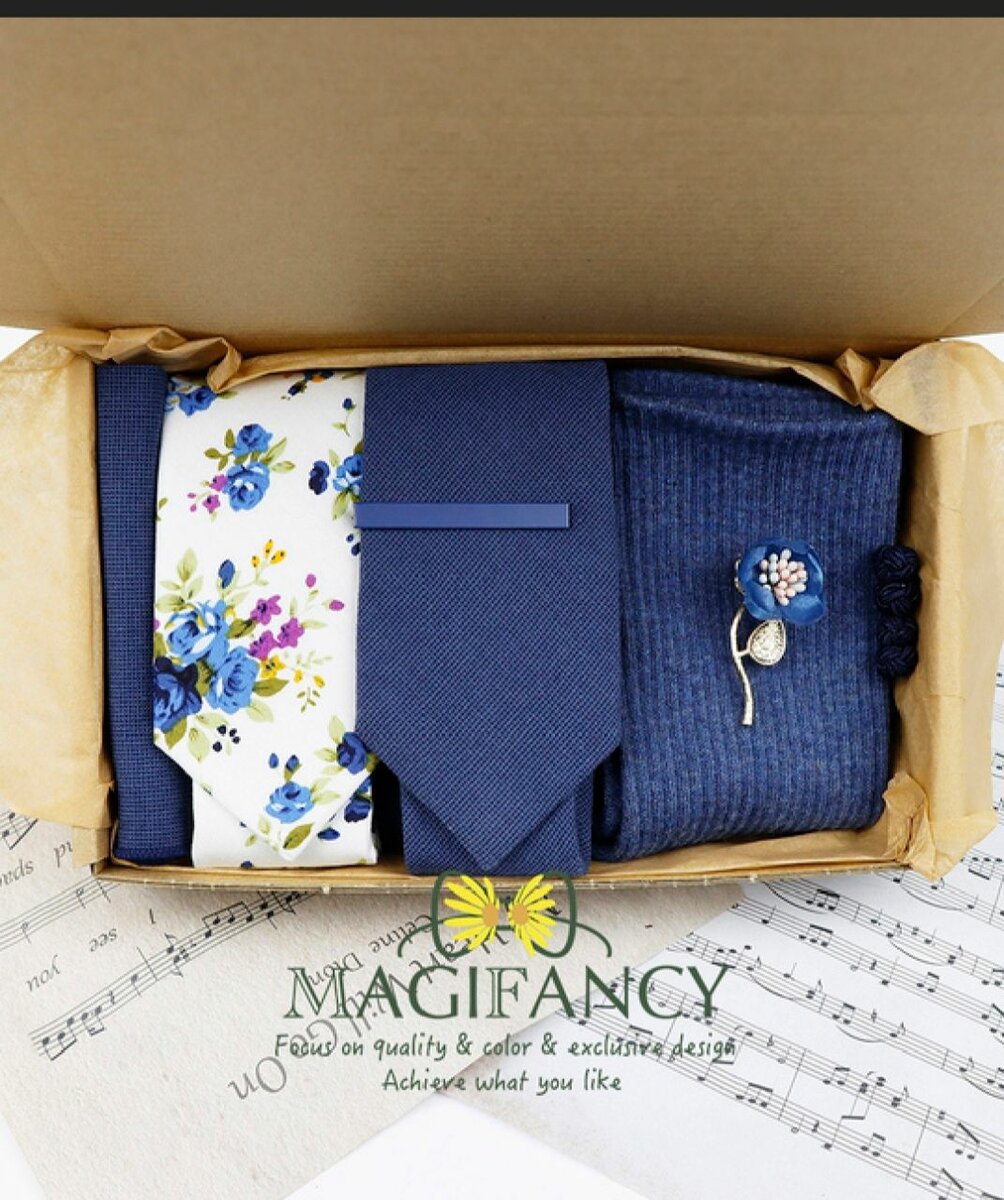 Coffret cadeau élégant composé d'une cravate sophistiquée, d'une pochette assortie et d'une épingle à fleurs raffinée. Idéal pour des occasions spéciales ou un cadeau raffiné. Disponible en plusieurs couleurs pour s'adapter à vos préférences.