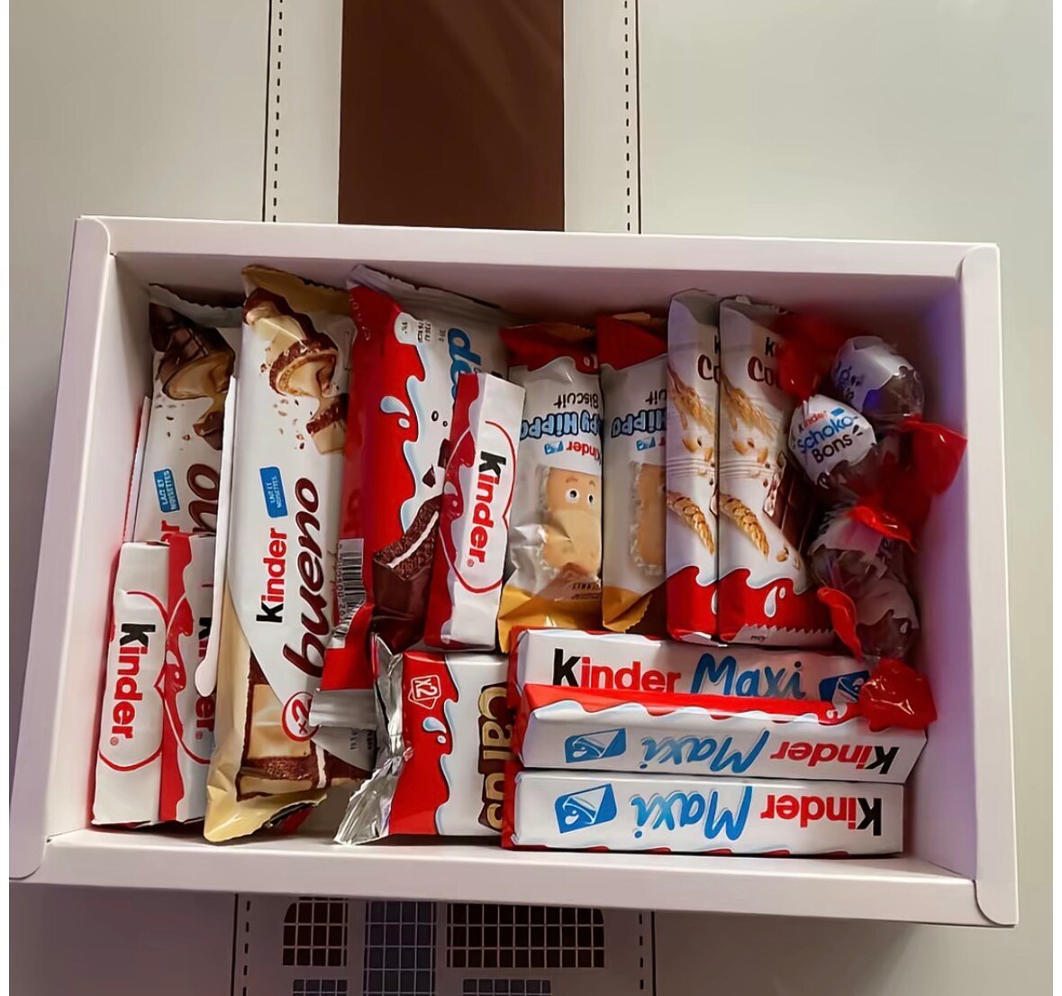 Un assortiment de délicieux chocolats Kinder, idéal pour les amateurs de chocolat. Contient des barres Kinder Bueno, Kinder Maxi et d'autres surprises chocolatées. Parfait pour un cadeau ou une gâterie.