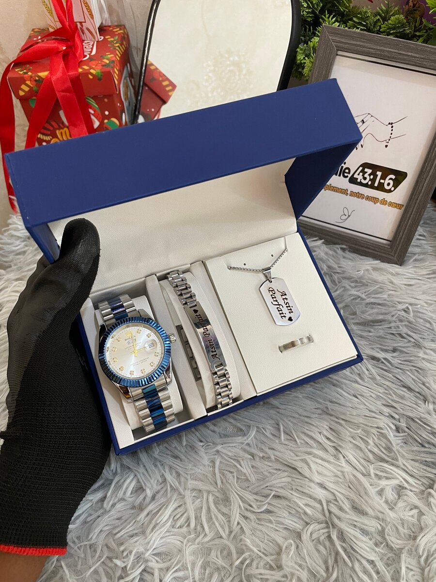 Découvrez cet ensemble élégant comprenant une montre luxueuse, un bracelet chic et un pendentif raffiné. Parfait pour compléter toute tenue avec style. Idéal pour offrir en cadeau ou se faire plaisir. Fabriqué avec des matériaux de haute qualité, cet ensemble met en valeur votre élégance au quotidien.