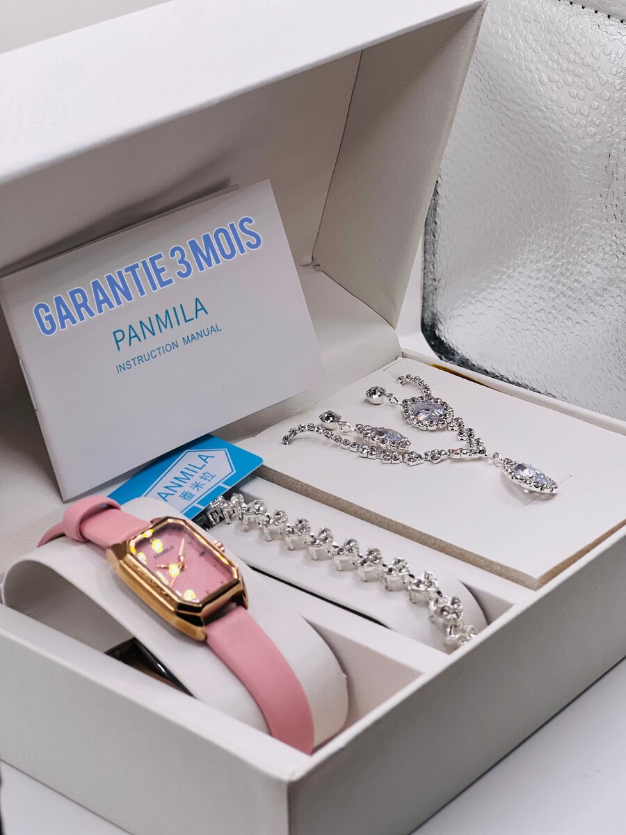 Découvrez l'élégance avec cette montre rose chic, accompagnée d'un bracelet et d'un collier étincelant. Parfaite pour un look sophistiqué et glamour. Idéale pour un usage quotidien ou des occasions spéciales. Fait un excellent cadeau pour elle!