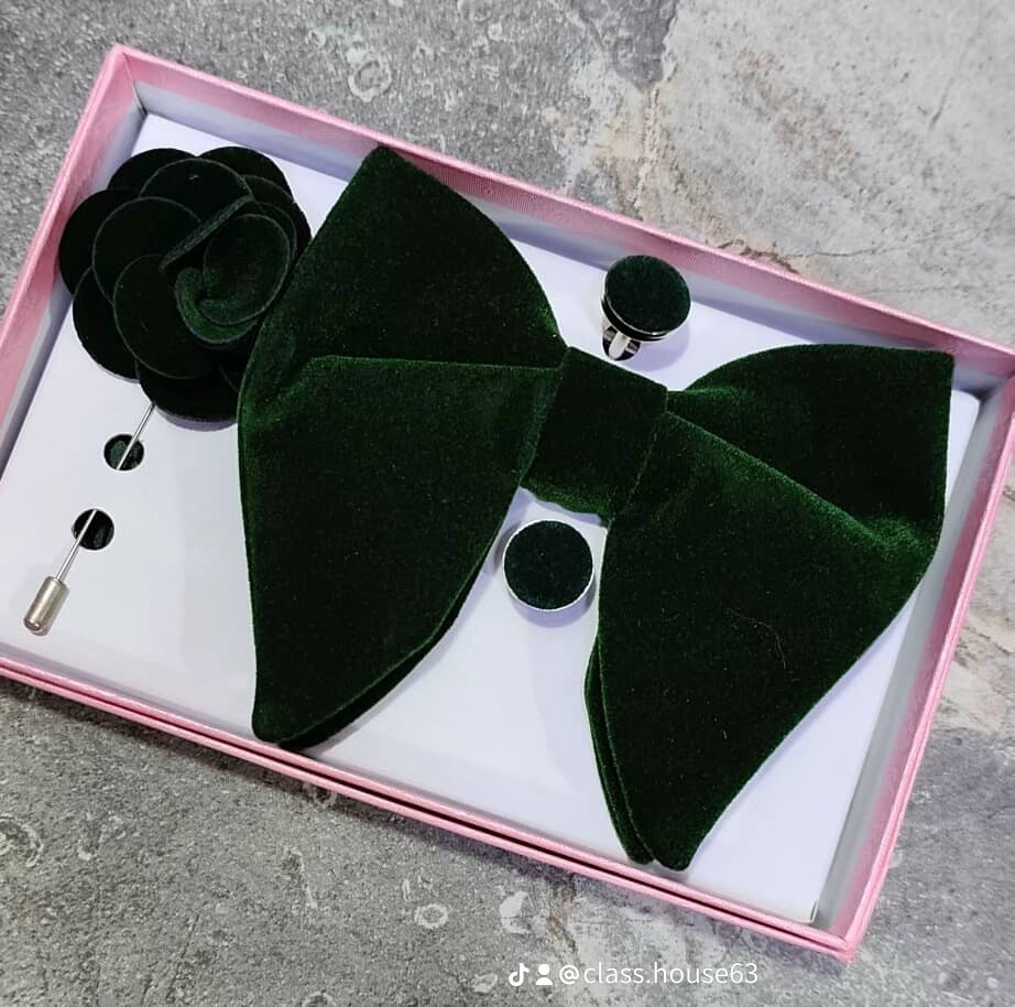 Noeud velour+broche+pochette+boutons de manchettes