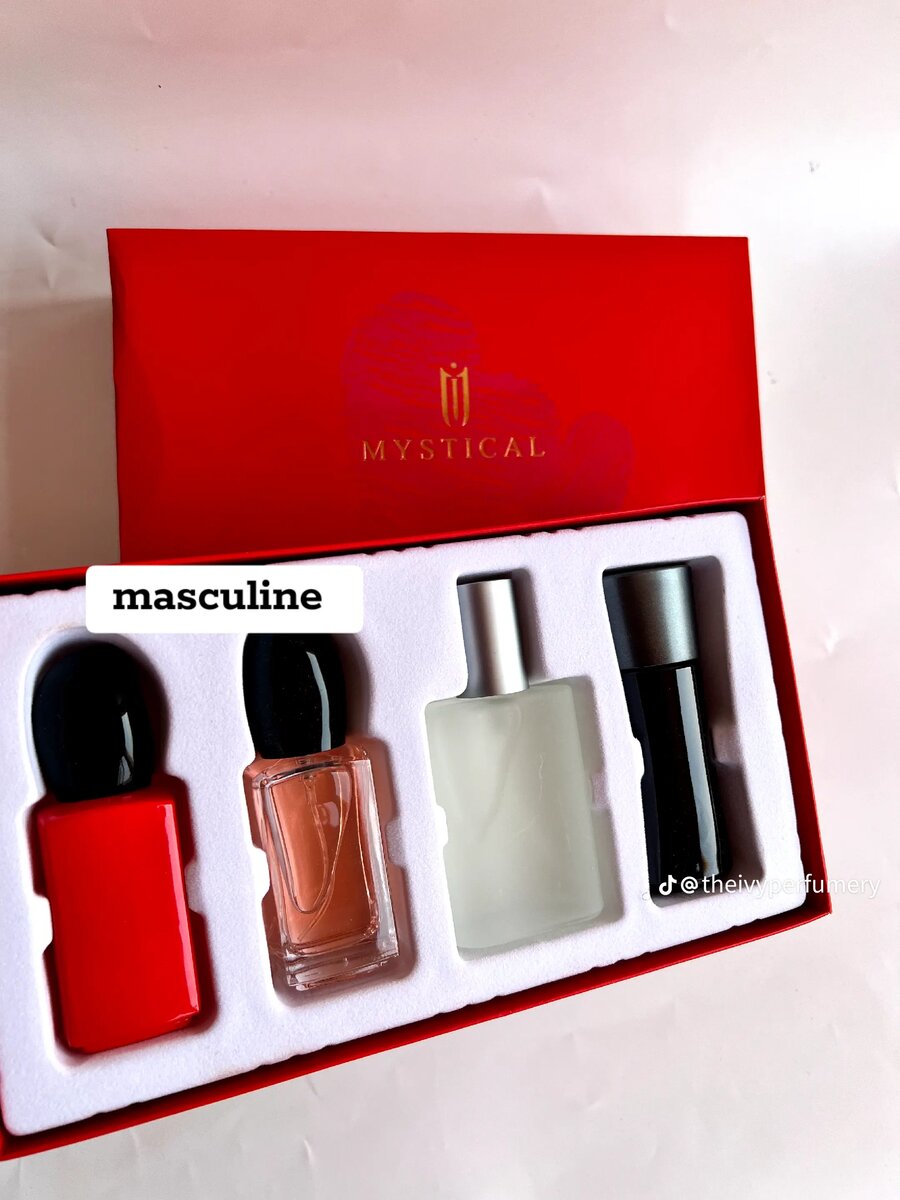 Découvrez le coffret parfum Mystical pour homme, parfait pour toute occasion. Avec quatre fragrances uniques, il sublime votre style et accentue votre présence. Cadeau idéal pour l'homme moderne!