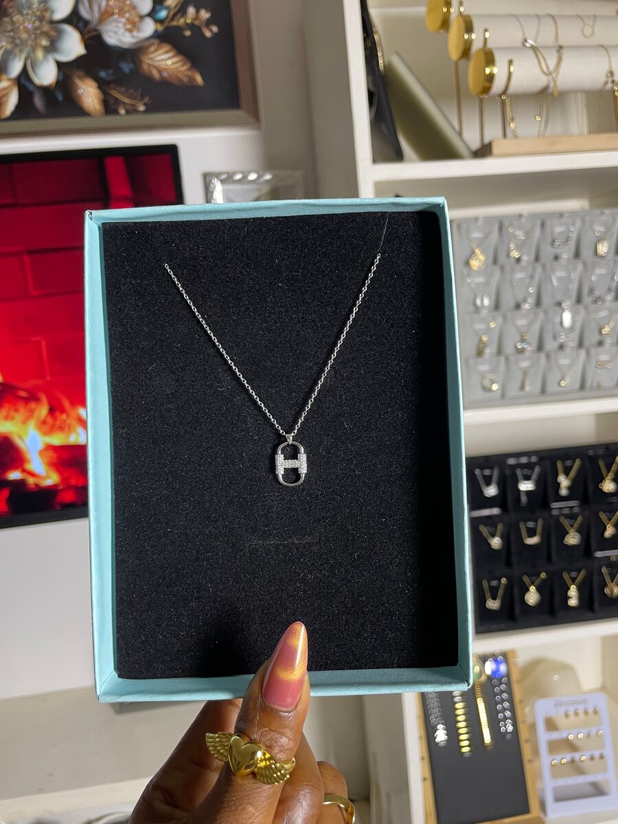 Élégant collier en argent avec pendentif cadenas. Parfait pour les femmes qui aiment les bijoux discrets et symboliques. Fabriqué en métal de haute qualité, il est idéal pour un usage quotidien ou comme cadeau spécial.