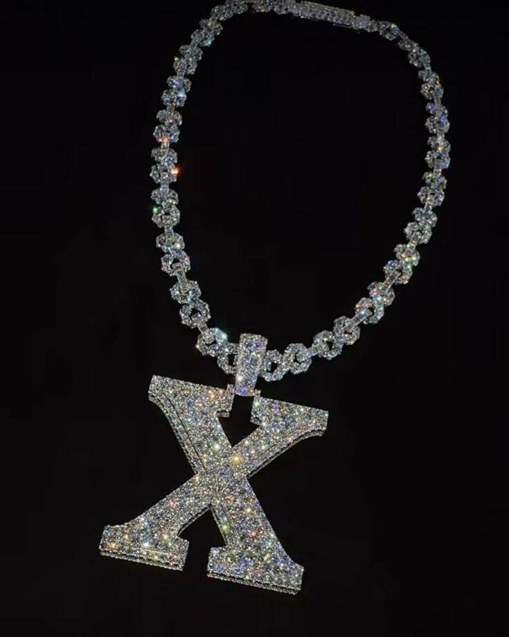 Collier tendance avec pendentif en forme de lettre X, incrusté de diamants. Chaîne robuste et design luxueux. Idéal pour les amateurs de bijoux hip-hop et streetwear.