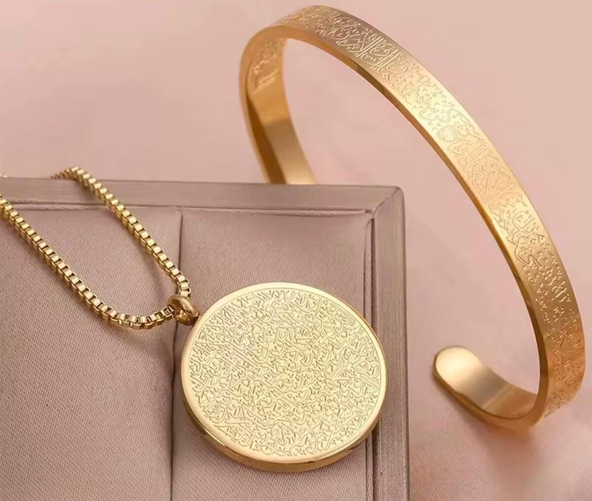 Collier +bracelet Ayat Al Kuri Disponible en taille standard pour adulte 1 chaîne + 1 bracelet Disponible en couleur or , argent , rose et noire