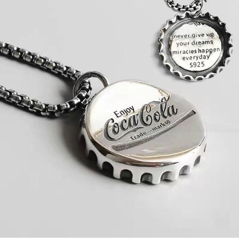 Ce superbe collier inspiré de Coca-Cola se distingue avec son pendentif en forme de capsule. Fabriqué en argent S925,