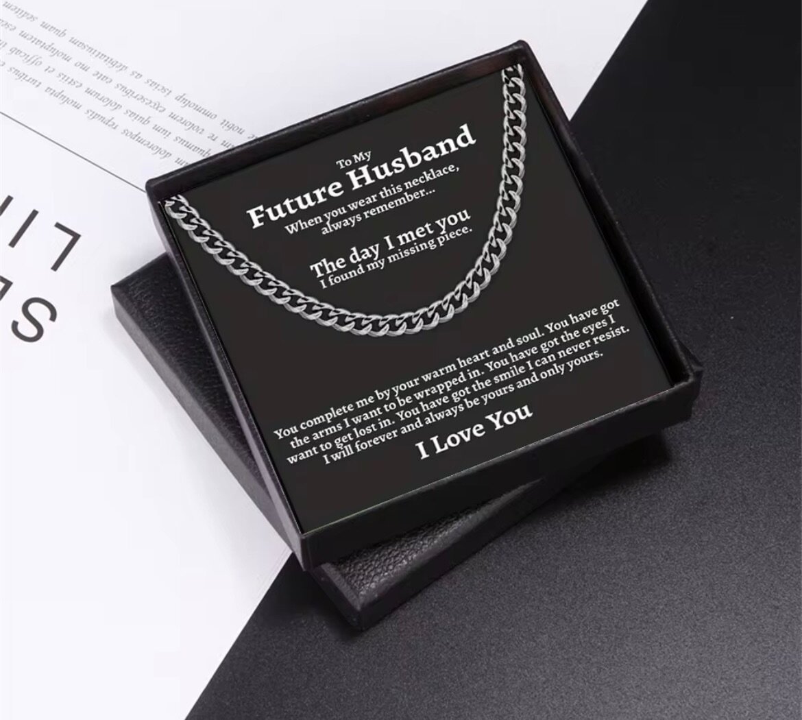 Ce collier chaîne en acier inoxydable est le cadeau parfait pour montrer votre amour aux êtres chers. Que ce soit pour "le meilleur des papas", "votre futur époux" ou "votre fils", sa conception élégante et son message personnalisé en font un choix idéal pour toutes les occasions spéciales. Durable et tendance, c'est un bijou qui sera chéri pendant des années.