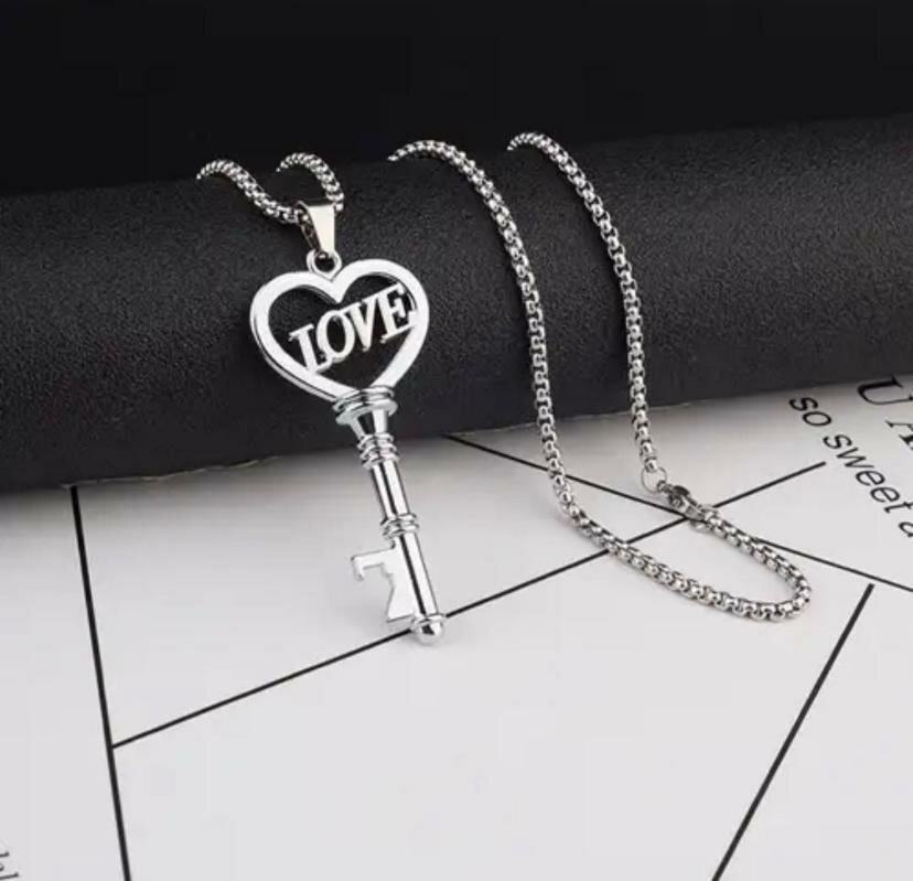 Optez pour ce charmant collier argenté en forme de clé avec l'inscription "LOVE". Parfait pour offrir ou se faire plaisir, ce bijou élégant apporte une touche de romantisme.
