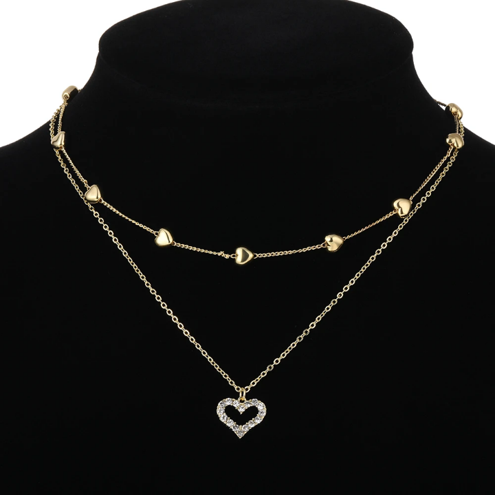 Ce superbe collier à deux rangées est orné d'un pendentif en forme de cœur et de délicates perles dorées. Parfait pour les occasions spéciales ou pour sublimer votre tenue quotidienne. Un cadeau idéal pour exprimer votre amour.