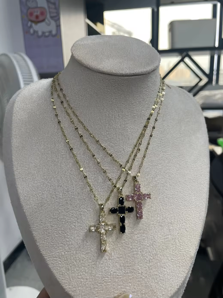 Collier Croix Strass Élégant