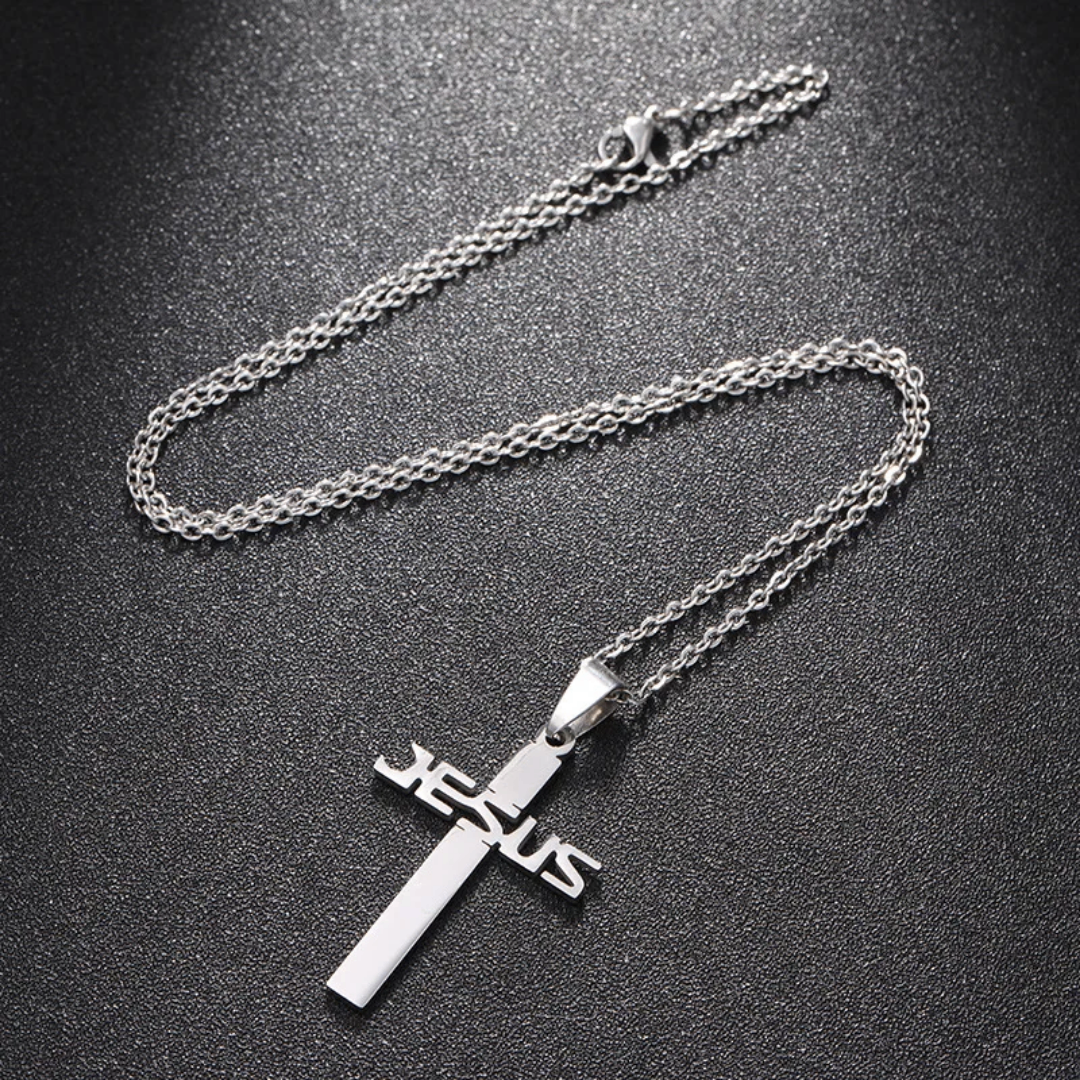 Élégant collier croix en argent avec inscription "JESUS". Parfait pour exprimer votre foi avec style. Idéal pour un usage quotidien ou des occasions spéciales. Offrez un cadeau significatif à vos proches.