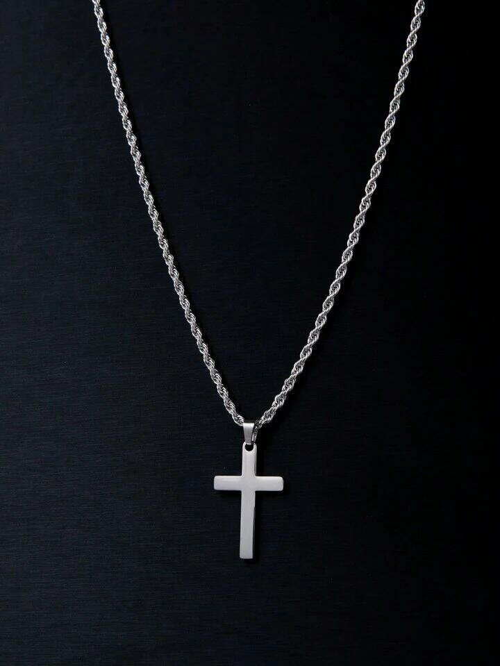 Élégant collier avec pendentif croix en argent. Idéal pour un look moderne et religieux. Portez-le au quotidien pour un style raffiné.