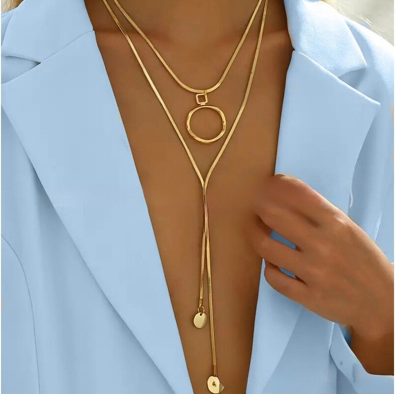 Ajoutez une touche sophistiquée à votre tenue avec ce collier doré à pendentifs. Idéal pour les occasions spéciales ou un usage quotidien, ce bijou complétera votre style avec élégance.