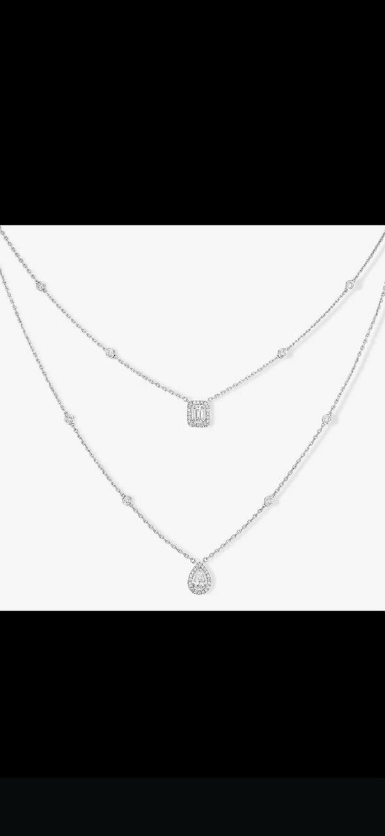 Élégant collier à double rang avec pendentifs raffinés, parfait pour ajouter une touche de luxe à votre tenue quotidienne ou pour un événement spécial. Fabriqué avec des matériaux de haute qualité pour un éclat durable. Idéal pour les femmes modernes cherchant à exprimer leur style unique.