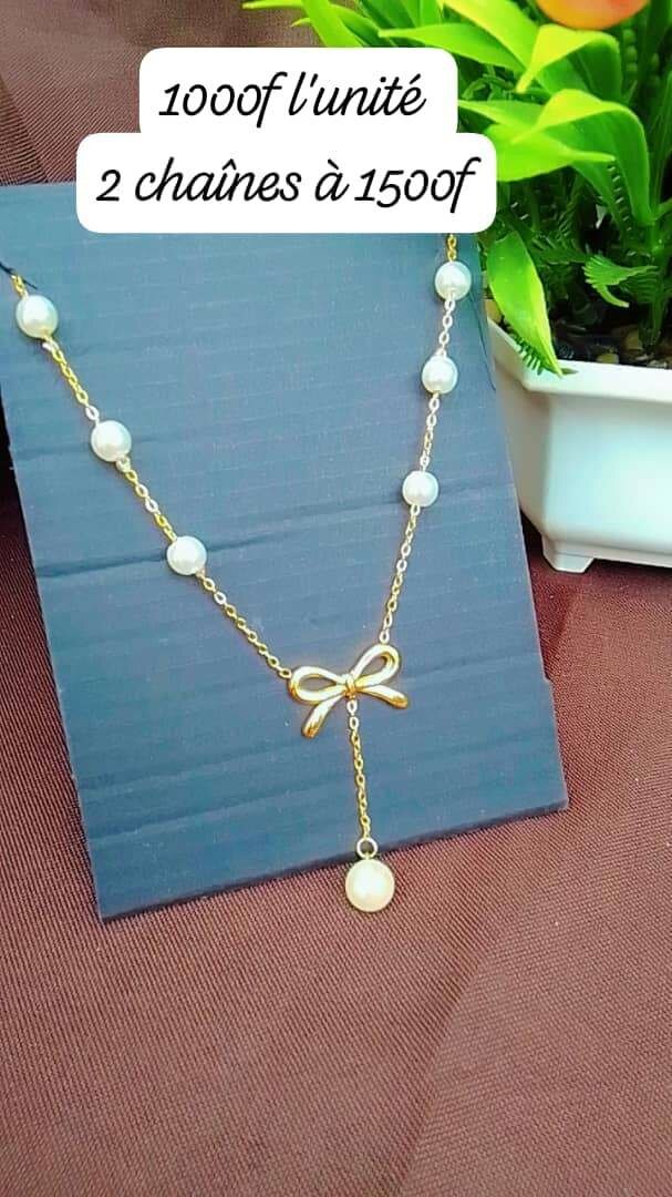 Découvrez ce magnifique collier en or avec un pendentif en forme de nœud et des perles raffinées. Parfait pour sublimer vos tenues, ce bijou délicat est idéal pour des occasions spéciales ou un usage quotidien. Offrez-vous ou à un proche ce collier élégant pour une touche d'éclat unique.
