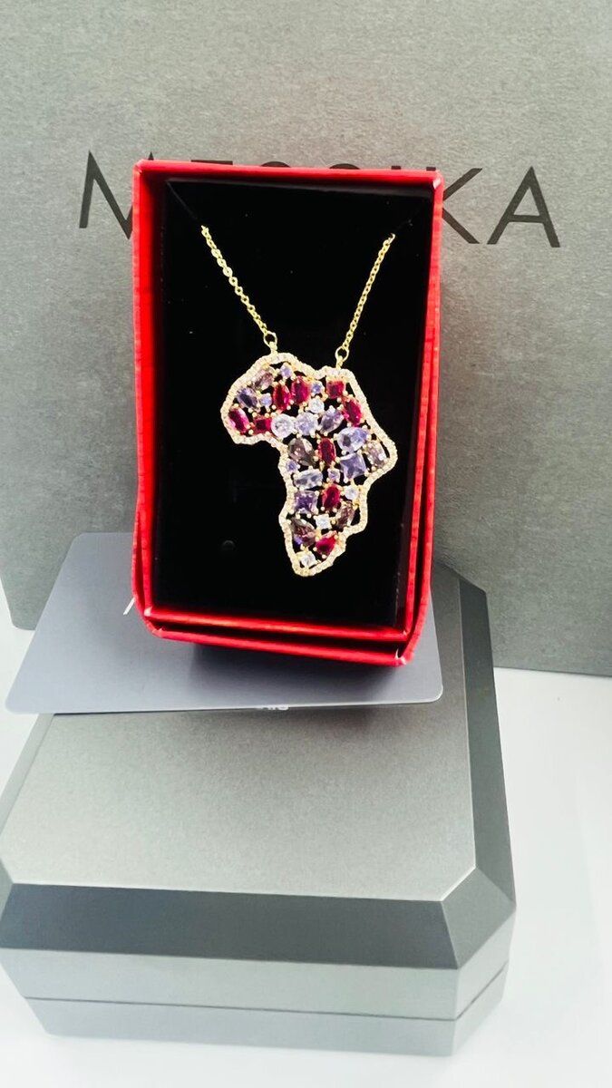 Collier Map Afrique en Or et Diamant
