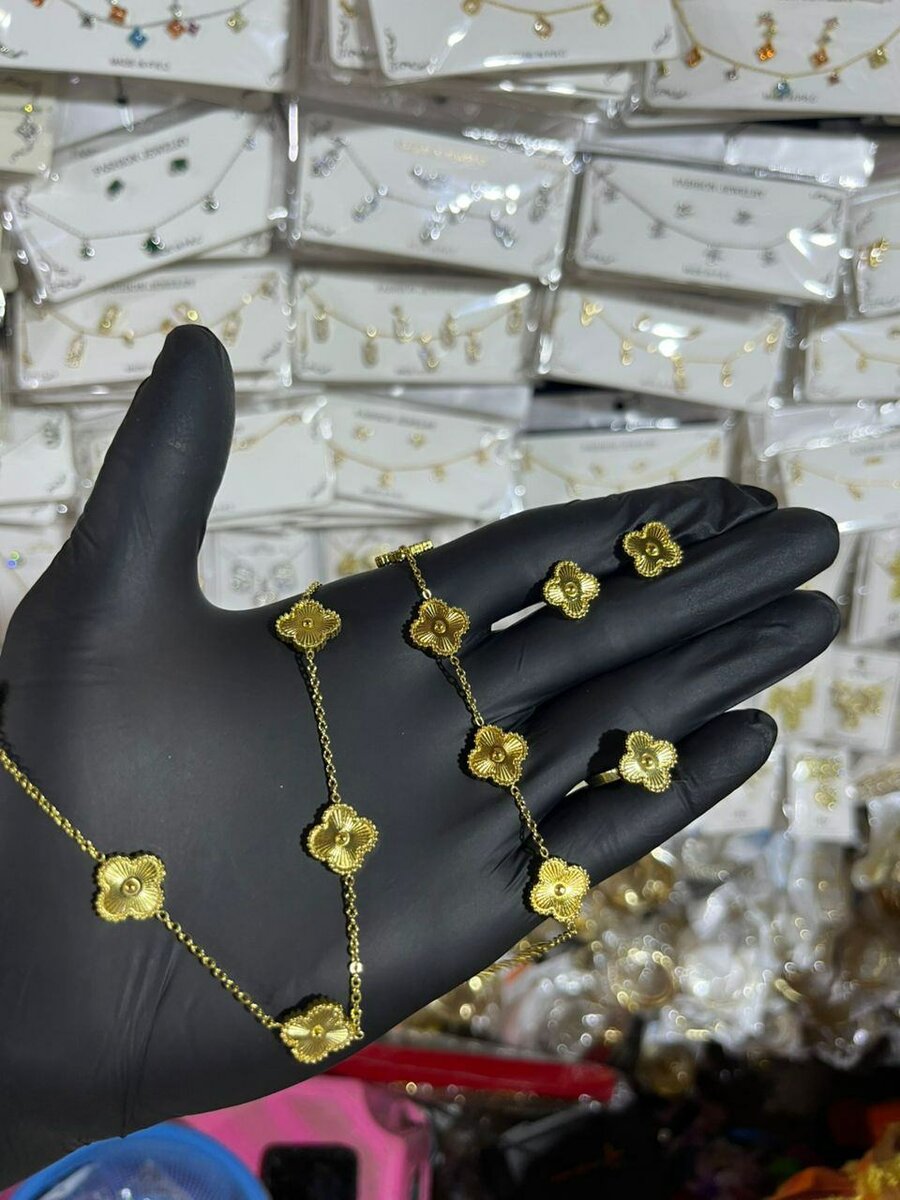 Magnifique collier en or plaqué avec pendentifs en forme de fleurs. Parfait pour sublimer vos tenues de soirée ou offrir en cadeau. Design raffiné et intemporel qui s'adapte à toutes les occasions. Idéal pour un look chic et tendance.