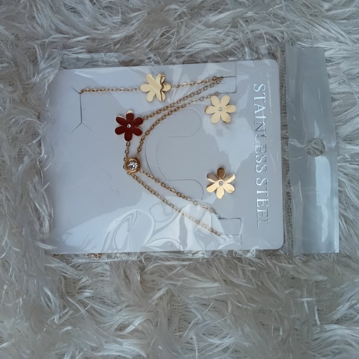 Élégant collier en acier inoxydable orné de fleurs en différentes couleurs. Conçu pour les femmes qui apprécient les bijoux raffinés et modernes. Parfait pour une utilisation quotidienne ou comme accessoire spécial.