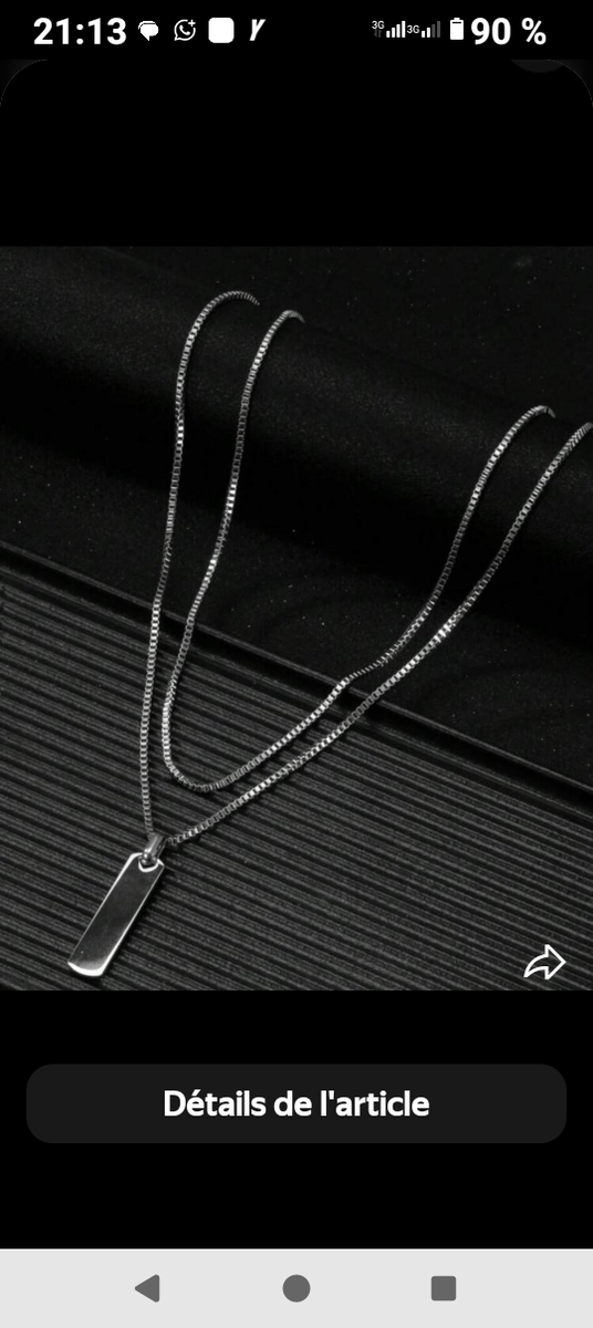 Élégant collier en argent avec pendentif rectangulaire. Parfait pour un look moderne et intemporel. Convient aux occasions spéciales ou port quotidien.
