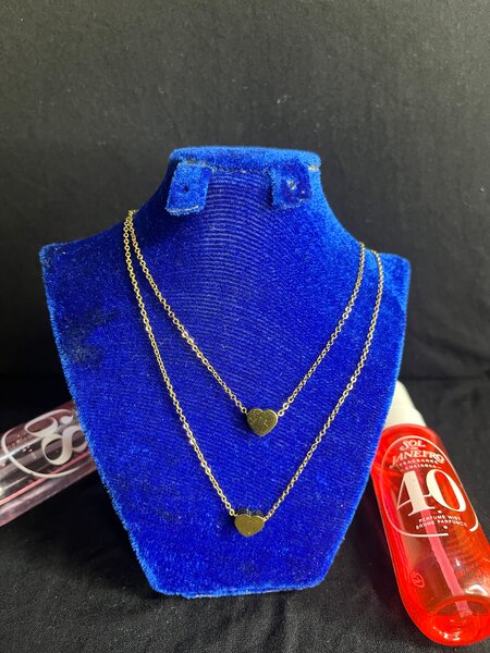 Admirez ce magnifique collier en cœur doré, parfait pour sublimer vos tenues. Sa chaîne délicate et ses pendentifs en forme de cœur ajoutent une touche romantique et élégante. Que ce soit pour un événement spécial ou votre quotidien, il s'ajustera parfaitement à tous vos styles. Un choix idéal pour les amoureux des bijoux raffinés.