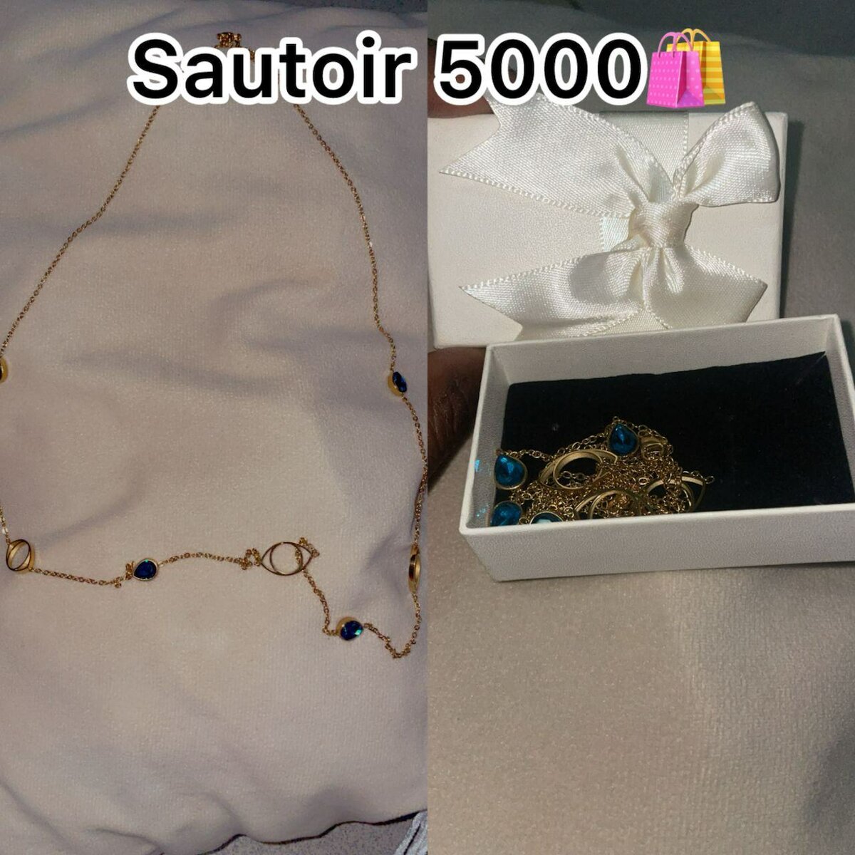 Élégant collier plaqué or avec détails en perles bleues. Parfait pour ajouter une touche de couleur et de sophistication à n'importe quelle tenue. Livré dans une boîte cadeau raffinée, idéal pour offrir.