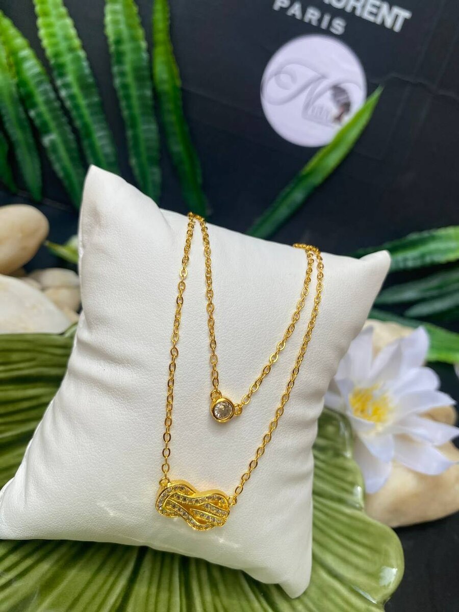 Découvrez notre magnifique collier en or doté de deux pendentifs élégants au design unique. Idéal pour sublimer votre tenue quotidienne ou spéciale. Parfait pour offrir ou vous faire plaisir avec une touche de luxe. Un must pour les amateurs de bijoux raffinés.