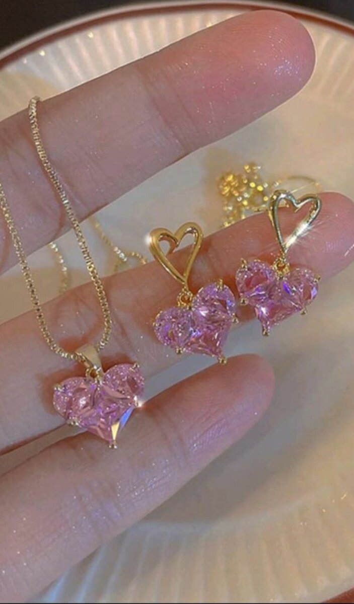 Découvrez l'élégance de cet ensemble collier et boucles d'oreilles en forme de cœur avec des cristaux roses scintillants. Parfait pour ajouter une touche glamour à votre tenue quotidienne ou pour des occasions spéciales. Un cadeau idéal pour celles qui aiment le raffinement.