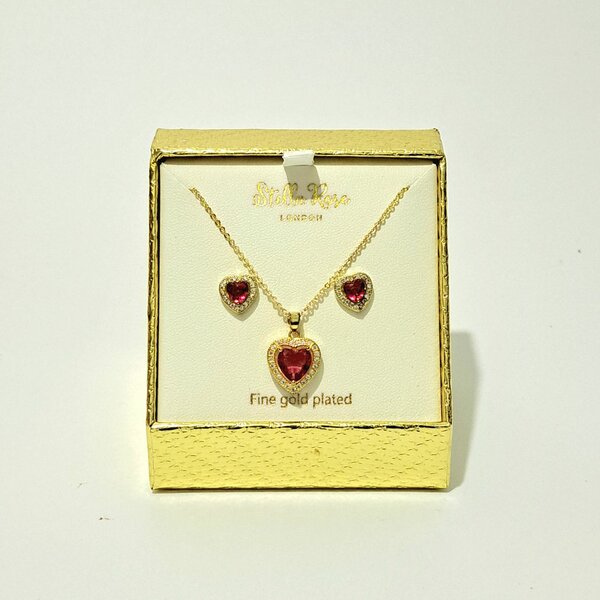Parure Bijoux Dorée Coeur Rouge